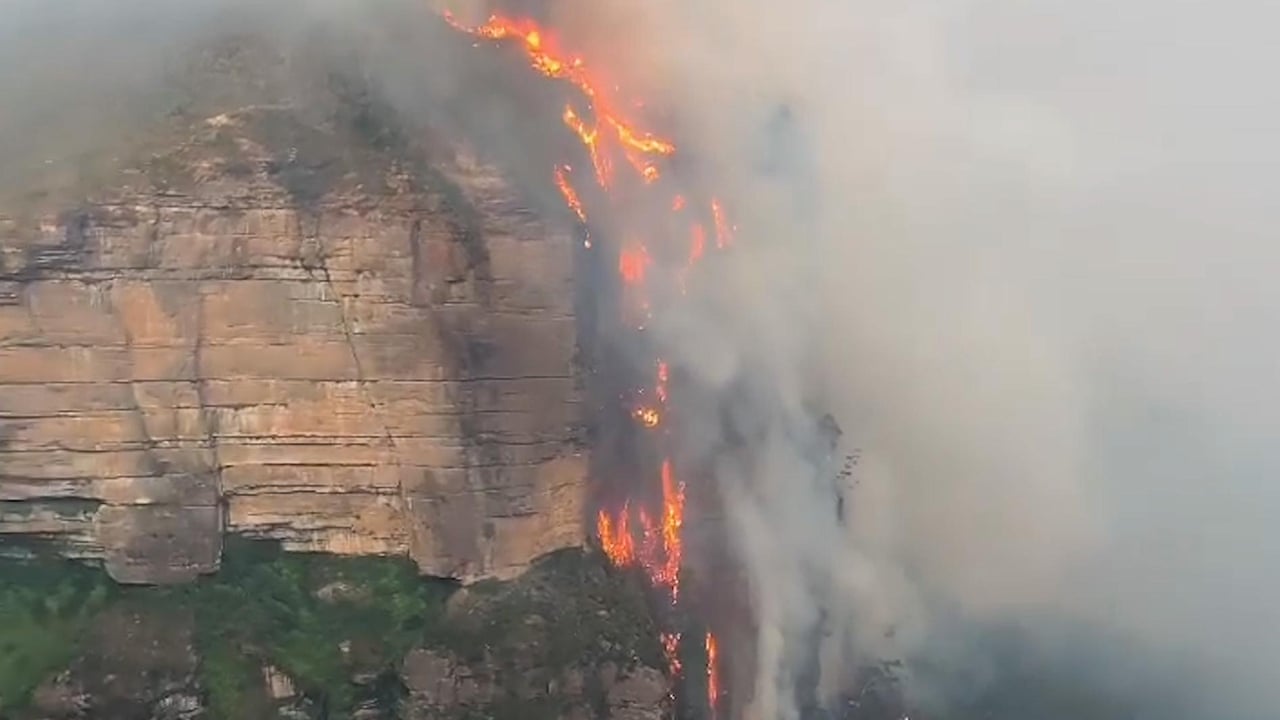 Blue Mountains Fire Filmed Climbing Up 200 Metre Cliff Face In Nsw